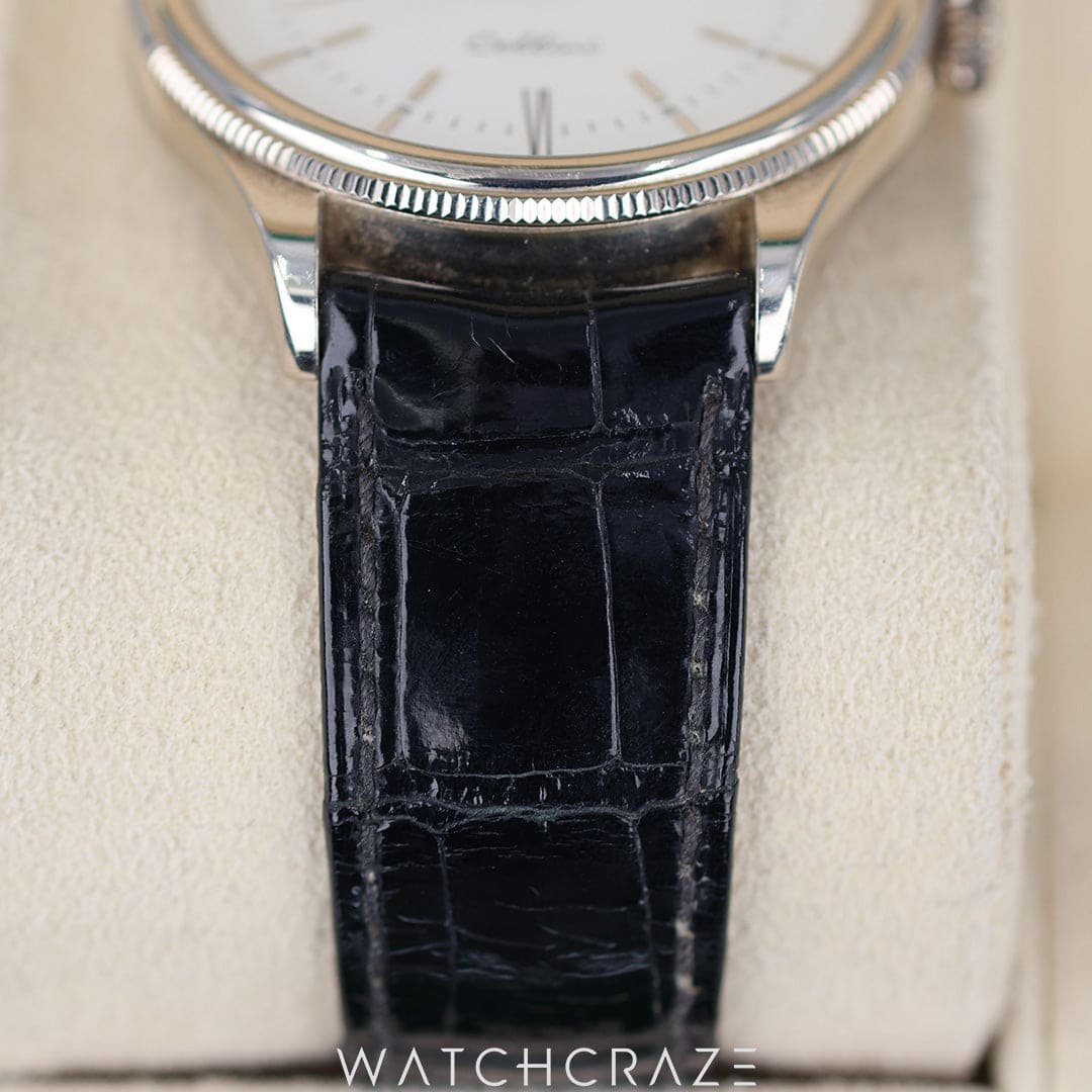 The luxurious black alligator leather strap, paired with an 18k white gold buckle, adds a final touch of sophistication, ensuring comfort and style on your wrist.