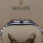 This model’s two-tone harmony, blending Oystersteel with Rolex’s signature 18 ct Everose gold, creates a symphony of metals that dazzles with understated opulence. The fluted bezel, a hallmark of the Datejust line, catches the light with every movement, echoing the brilliance that Rolex is celebrated for.