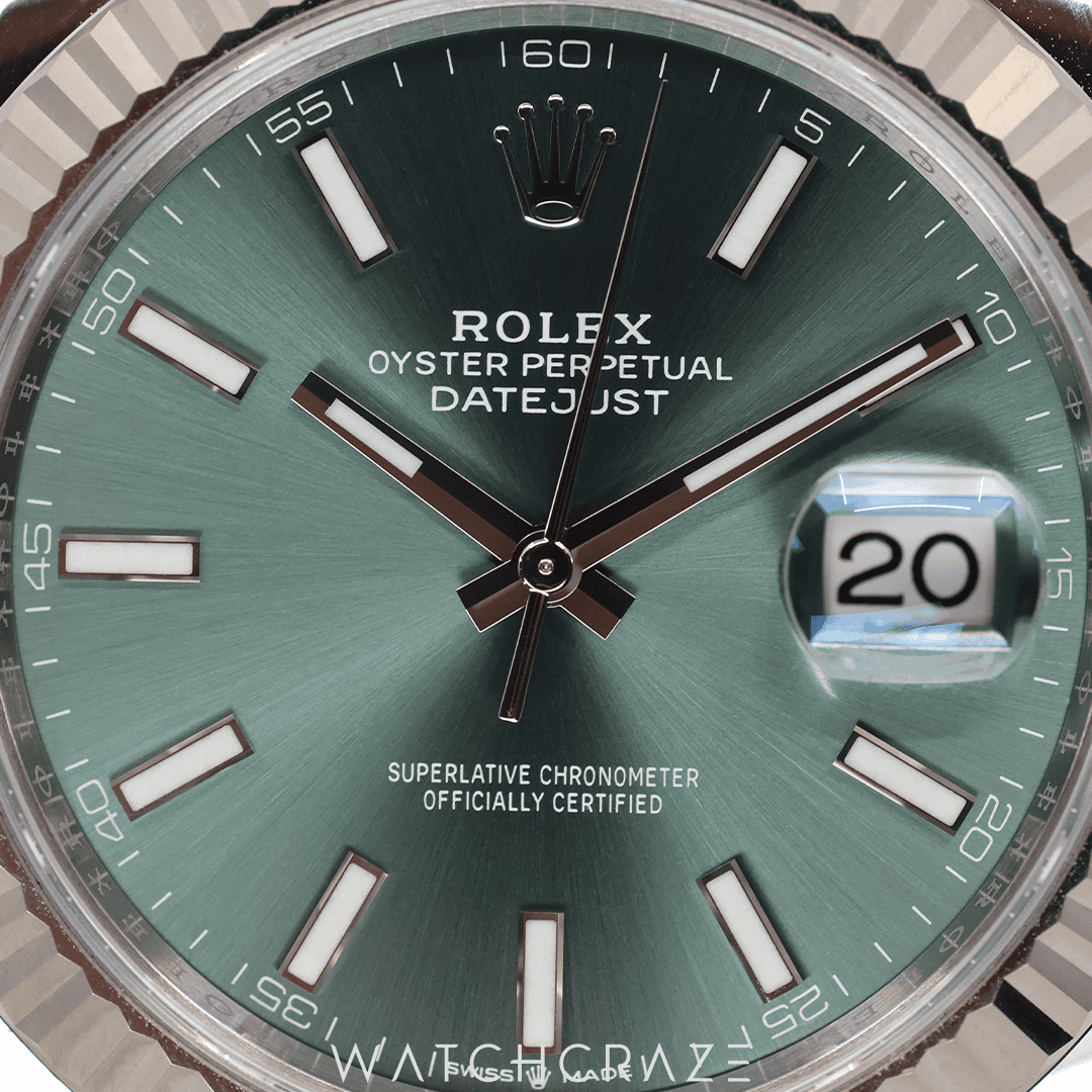 The Jubilee band, a representation of ease and elegance, is featured on the Rolex Datejust 126334. The polished and satin-finished links enhance the overall sophistication of the watch while also ensuring a secure fit. This watch subtly uplifts your look and exudes sophistication and class whether you’re attending a formal event or going on a casual date.