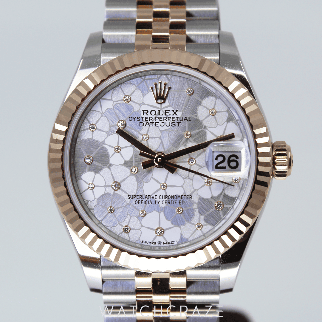 ROLEX DATEJUST TWO-TONE ROSE GOLD FLORAL-MOTIF DIAL 31MM 278271