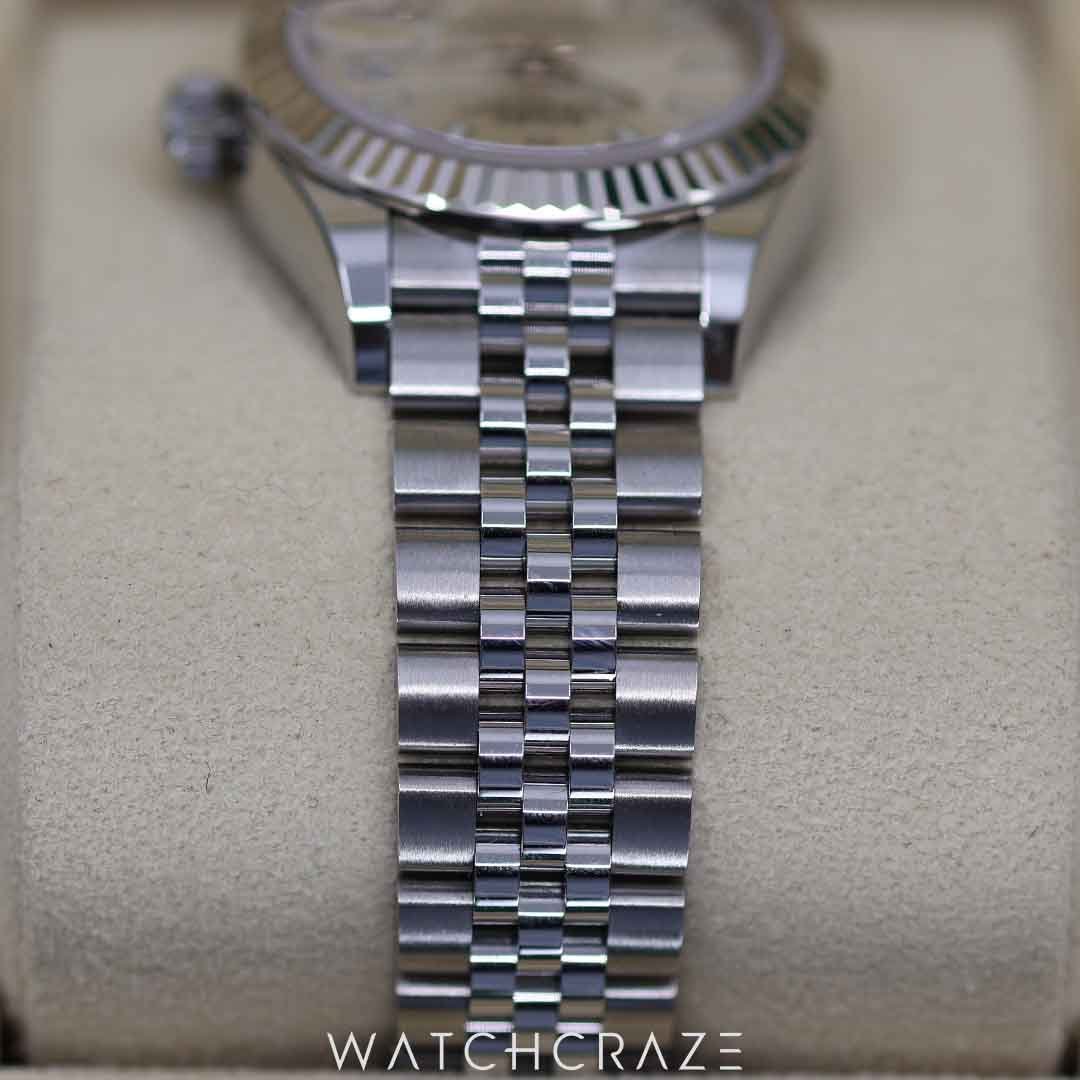 Exquisite Elegance: Encased in a harmonious blend of Rolex’s Oystersteel and white gold, the 28mm case is a testament to subtle grandeur. Its silhouette, more than just a case for time, is a symbol of refined taste, perfect for adorning the wrist of a discerning woman.