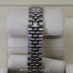 The beautiful diamond-set bezel, which is encased in gleaming oyster steel, represents luxury and distinction. The watch’s dial, a picture-perfect canvas, is accented with diamond hour markers that sparkle brilliantly and add to the accessory’s attractiveness.
