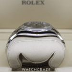 The 41mm Oyster case is made of corrosion-resistant Oystersteel. It’s a sturdy daily wearer. Rolex’s patented twin-lock double waterproof system guarantees 100-meter waterproofness.