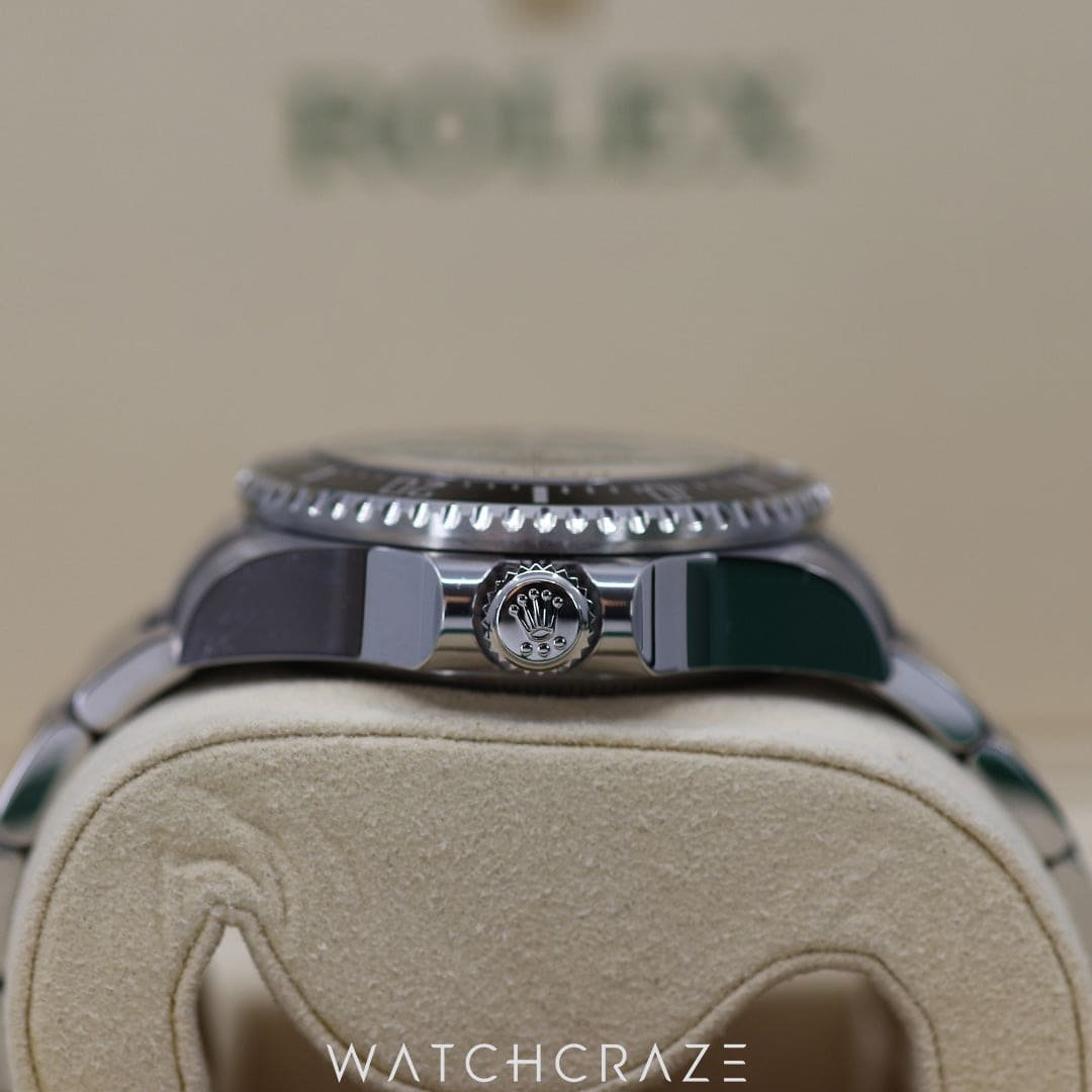 Dive into the unknown with its robust 44mm Oystersteel case, designed to withstand depths of up to 3,900 meters (12,800 feet) – a feat as remarkable as the ocean’s deepest trenches. The watch’s captivating D-blue dial is a homage to the ocean’s twilight zone, transitioning from a vibrant blue to the mysterious black of the abyss, echoing James Cameron’s legendary deep-sea expeditions.