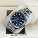 The 2021 Rolex Sky-Dweller 42mm with a black dial showcases the brand’s precision and elegance for adventurers and globetrotters. This extraordinary timepiece will effortlessly accompany you on your travels, making a bold style and sophistication statement.