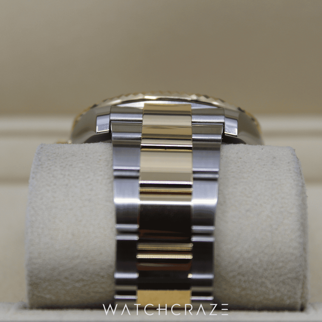 The Rolex Sky-Dweller’s two-tone design of stainless steel and 18k yellow gold is timeless and flexible, thanks to its excellent craftsmanship. Its 42mm casing is bold on the wrist but balanced and polished.