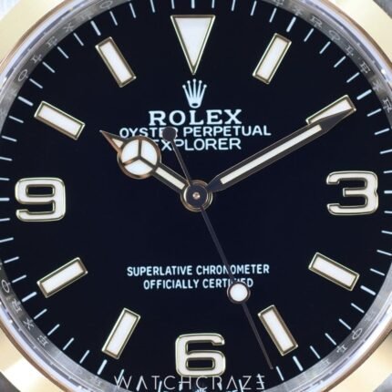 ROLEX EXPLORER TWO TONE STEEL AND YELLOW GOLD BLACK DIAL 36MM 124273